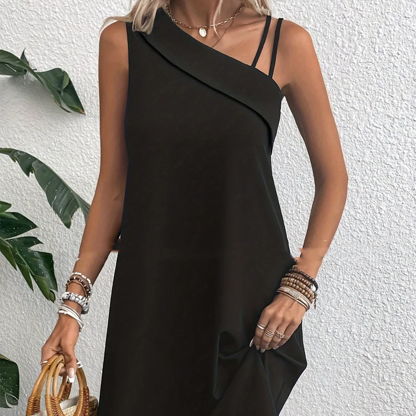 Asymmetric One-shoulder Sleeveless Sling Dress