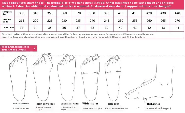 Size: 34,35,36,37,38,39,40 customized non-return, 41 customized non-return, 42 customized non-return, 43 customized non-return, 33 customized non-return