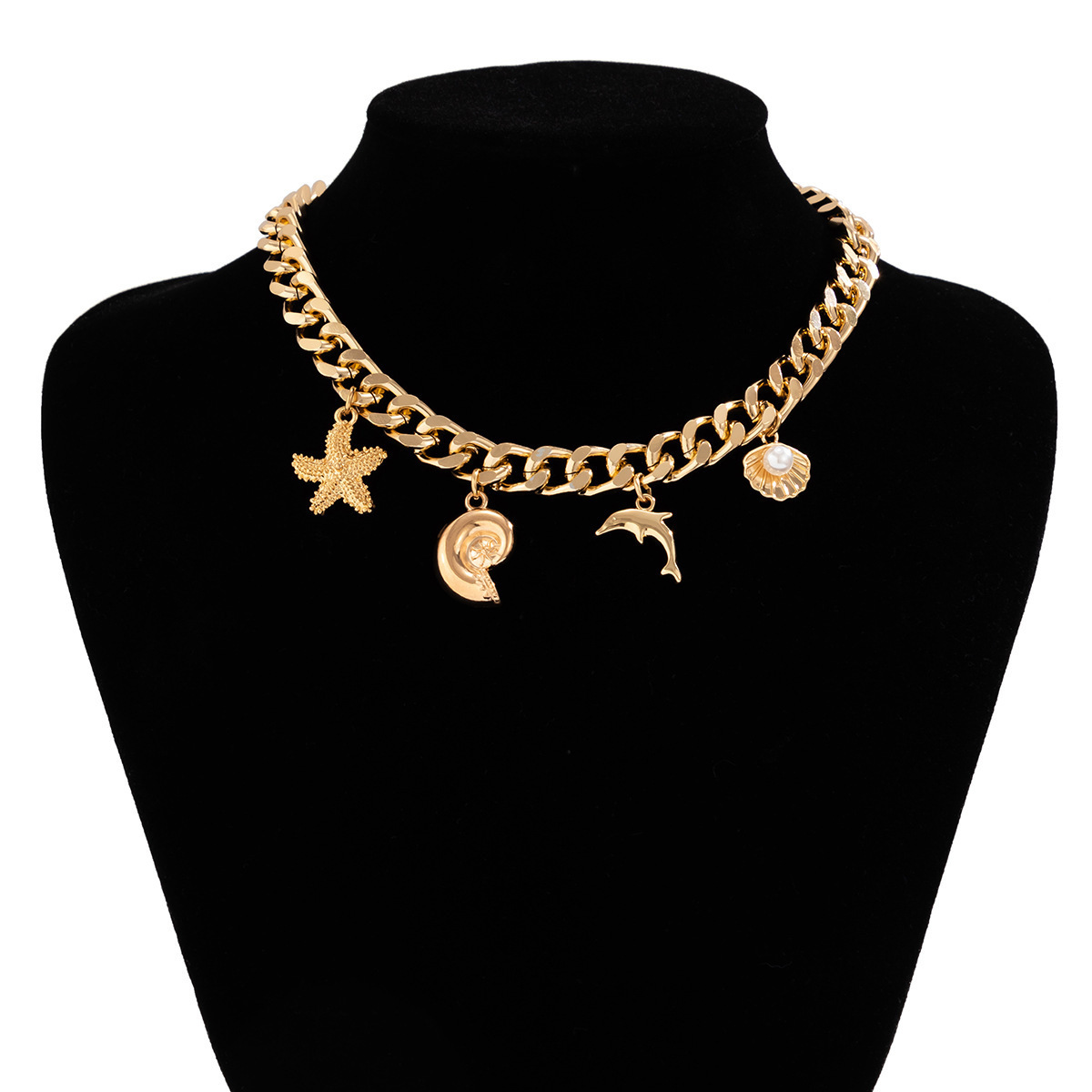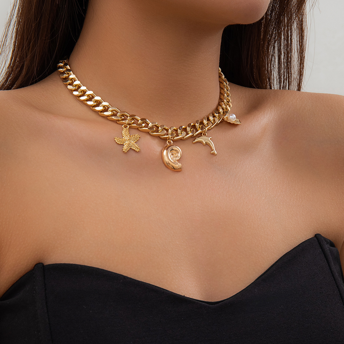Creative Boho Conch Dolphin Starfish Pendant Choker Necklace Bracelets Women Trendy Vintage Tassel Chain Grunge Jewelry Fashion Jewelry