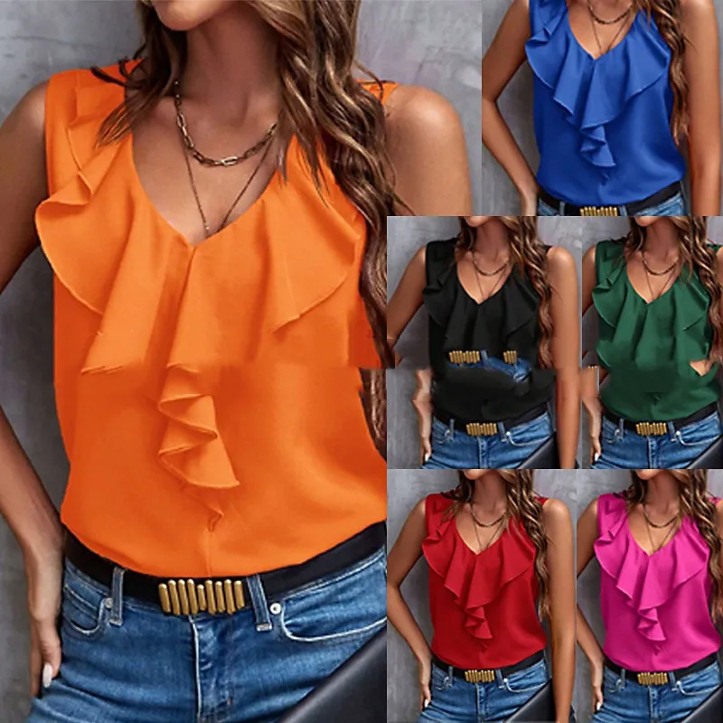 Summer Fashion All-matching Solid Color Lace V-neck Sleeveless Top