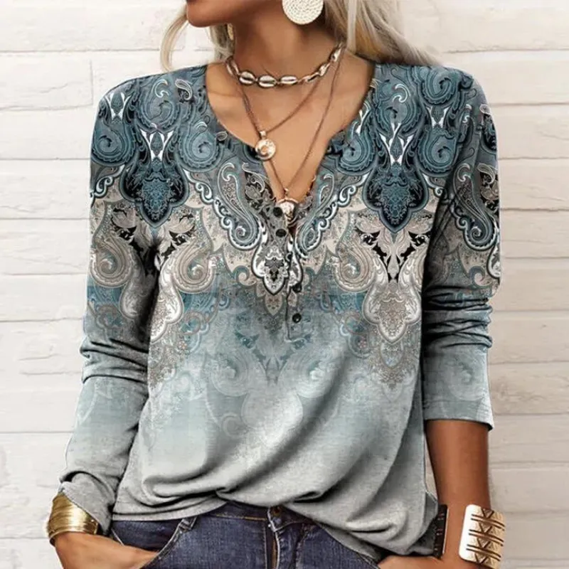 Women's Long Sleeve Printed Ethnic Fashion T-shirt