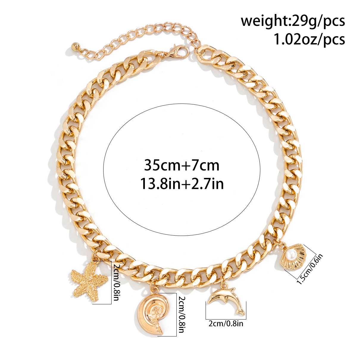 Creative Boho Conch Dolphin Starfish Pendant Choker Necklace Bracelets Women Trendy Vintage Tassel Chain Grunge Jewelry Fashion Jewelry